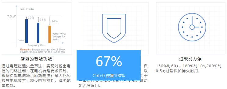 ②體積小,先進(jìn)的熱設(shè)計(jì),比同類型變頻器體積大大縮小; 接線方便,控制回路端子采用彈簧式端子,免螺絲安裝,效率高;